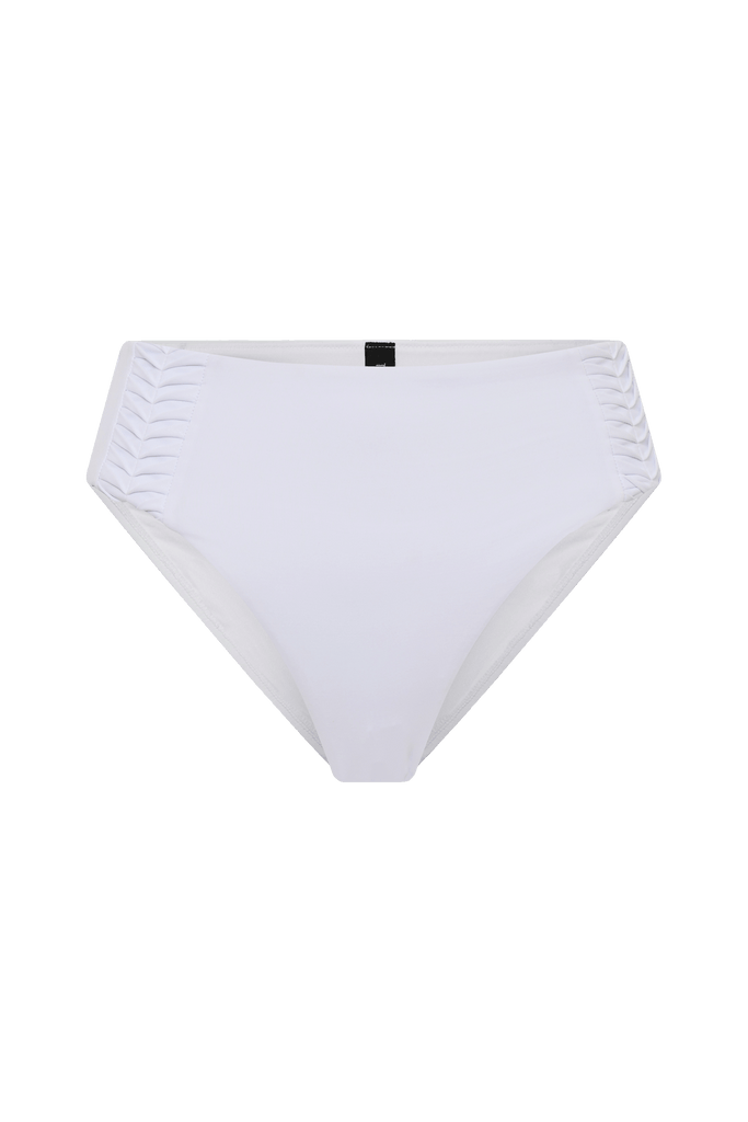 Elevate your swimwear essentials with our sculptural Pintuck High Rise Pant. Defined by structured pintuck paneling at the front, this piece offers an artful play on texture and form. The tonal monogram embroidery at the hip provides a discreet nod to signature branding, while a fully lined interior ensures smooth, supportive wear.